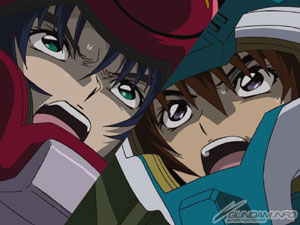 Even here, it doesn’t need to be mentioned that Kira and Athrun are (unusually for Gundam?) absolute heartthrobs to female fans. Kira and Athrun were close friends during their childhood on the moon, torn apart when Athrun’s family moved to the PLANTs (a new style of colony.) As a token of his feelings, Athrun gave Kira the pet songbird robot Birdy. Birdy’s presence and expressiveness during the future passionate, fated encounters between the two would surely qualify it for the Academy A-burds. Okay, maybe that’s pushing it a bit, but without Birdy, the two dear friends, both ladykiller robot nerds but Kira naive and sensitive (← delicate?) while Athrun is sometimes more brusque, would never have been drawn into the storm of fate which pitted them against each other. They’re like a battlefield Romeo and Juliet, or Anzu and Zushiomaru (← okay, that’s pushing it), aren’t they? This duo, who showed a whole new side of Gundam and set the standard for a new generation, are each other’s frenemy special someones.