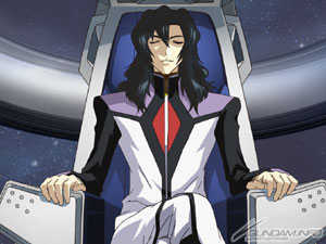Paradoxical or no, hypocritical or no, these tactics are successful at swaying public opinion away from the Earth Alliance and toward ZAFT. Able to eliminate the anti-Coordinator political faction Blue Cosmos and its sister secret society LOGOS, he then seizes the Earth Alliance’s “Requiem” orbital strategic bombardment platform and begins to put it to his own uses. (← Sympathy rapidly fading.)