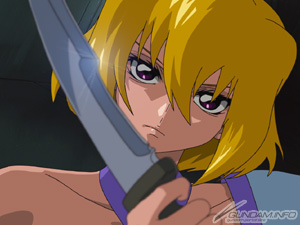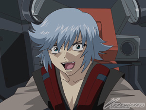 Next, the trio's lone woman, Stella Loussier. Even though she appears and almost like a big sister when off the battlefield, she's still an Extended, and is easily the most dangerous of the three in combat. In the hijacked Gaia Gundam, and later in the Destroy Gundam, she fights with an unreservedly aggressive style. She's plenty scary too.
