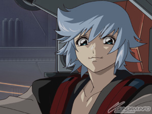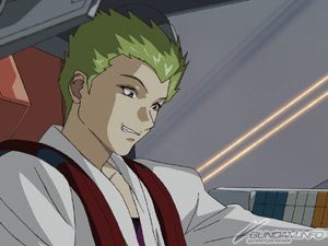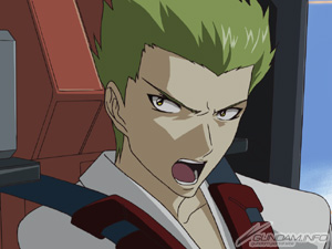 Sting Oakley, who pilots the Chaos Gundam also captured in their raid, takes on the role of squad leader (←and big brother?) for Auel and Stella. He's calm and composed (unlike the other two). He's the only of the three without a known block word. (←Does he have one? Is there a prize for guessing it?)