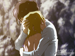 This is only the first of her meetings with Shinn, and their attraction grows even as they clash repeatedly; finally, Shinn's Impulse Gundam shoots her down, and she promises to never pilot again, but Neo Roanoke breaks this promise as he fiorces her into battle again. And this time, her memories of Shinn have been wiped. (←Masked man Neo: also kind of a dick.)