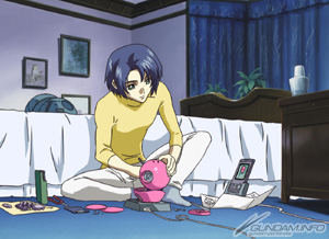 Meanwhile, Athrun Zala, son of PLANT Supreme Council chairman Patrick Zala, is also a Coordinator. Gifted with exceptional dexterity (according to Kira, he can even write on gains of rice!), his hobby is the construction of robots and other electronics. He's given gifts like the bird robot Birdy (easy to recognize, as that's what it says) and everyone's favorite round robot Haro (easy to recognize, as... well, yeah.)