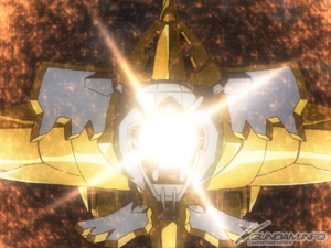 Really, when you think about a golden MA, you have to wonder just how much it cost to paint it that, (← Imagine some kind of reality show about MA tuning!) but it really isn't just a showboat! Those seven GN Tau Drives have an incredible output that give it huge offensive and defensive potential. Its pilot is Alejandro Corner, a United Nations ambassador (and secretly a Celestial Being Observer.)