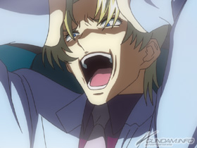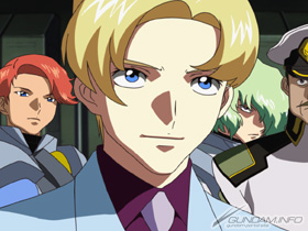 As the Earth Alliance battles ZAFT, an armed organization effectively acting as a national military, he takes command of his own personal three-Gundam squad from the front, arrogating a position on the bridge of a battleship (much to its crew's consternation.) Perhaps this abnormal loathing can be blamed on a deep-seated complex formed by childhood memories of being outcompeted and outfought by Coordinators—but in any case, a gentlemanly, almost hunkish facade is shattered by the iciness of his glare and his utter lack of composure when caught aback.