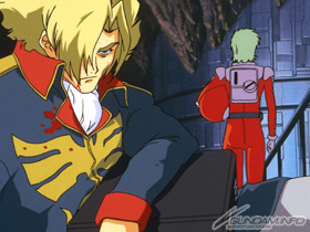 First, let's introduce Garma Zabi ( Mobile Suit Gundam.) He's the fourth son of Principality of Zeon leader Degwin Sodo Zabi. Compared to his craggy father, the boy is Prince (literally!) Charming. Tasked with command of Zeon's Earth Attack Force on the North American front, he holds the rank of Captain. Having graduated military academy at the head of his class, his combination of brains and beauty (complete with the coquettish habit of curling his hair around a finger) endears him to the people of Zeon (especially the swooning women), and a promising future even compared to his siblings seems assured. Kind and dainty, his gentle upbringing leaves him incredibly naïve, to the point that his father Degwin initially resists his choice of a military career.