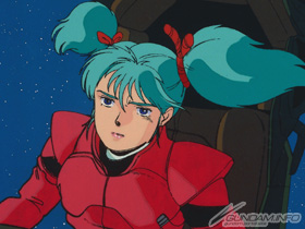 Already fervently interested in the concept of Newtypes, the episode which finally forced her father to lay down the law was a runaway trip to a Newtype monastery (!?) in India, led by a woman named Christina, who taught that the solution to humanity's problems was a mass awakening as Newtypes. Now in space, meeting Newtypes Amuro Ray and Char Aznable, her obsession deepens. At first, traveling with the Federation's "Londo Bell" unit and accompanying Captain Bright Noa's son Hathaway Noa, she has a crush on Amuro. However, heartbroken at Amuro's romance with Chan Agi, (a Londo Bell engineer) she interferes in Char's favor when Char and Amuro fight on Londenion. (A Side 1 colony, and the home port of Londo Bell) Charmed by Char, and still holding a fully-acknowledged (!?) jealousy of Amuro, she takes the name of Quess Air and joins Neo Zeon's forces.