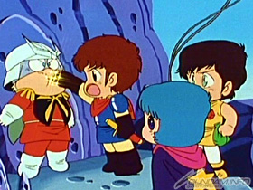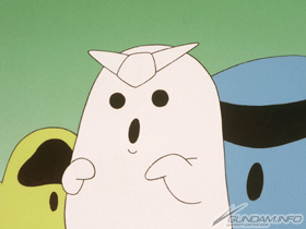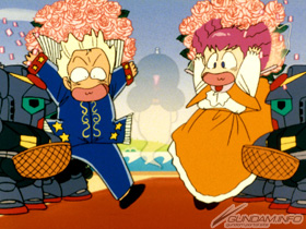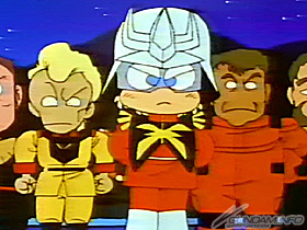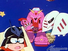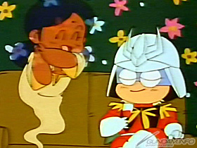 The first part features loads and loads of fan-favorite mobile suits as SD characters. There's fast-paced flyswattersmanship (!) in the "combat" scenes, goofy eyecatches with an actual shout of "eyecatch", and Lalah's guest appearance as a ghost who can't see time. Honestly, just going back to the laid-back '80s is wonderfully fresh these days.