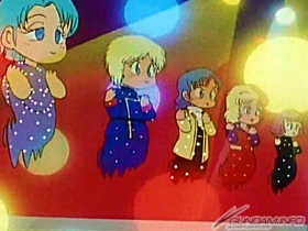 When the elite Zeta Academy for Girls and the Nu Boys School student governments (led by Haman and Char, respectively) combine to hold a school festival, bad boy Amuro from Counterattack Academy crashes the party. The choral performance by the cast was included on the soundtrack CD, and is one of the precursors to modern image songs and character songs.