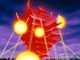 Next, the five Gundams discover and destroy Yamisyougun's machinations and machinery in the deserted village of Jaburo.