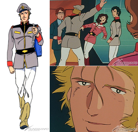 An energetic man's man with a bit of Mediterranean charm, he wastes no time in trying to talk his way into Sayla (Sayla Mass) and Mirai's (Mirai Yashima) beds after his assignment to the White Base. However, he's more than just a smooth talker: he's also possessed of gunnery and piloting skills that befit a lieutenant junior grade. (He's the only character in the series to score a direct hit with the White Base's main guns in ship-to-ship combat, for example.)