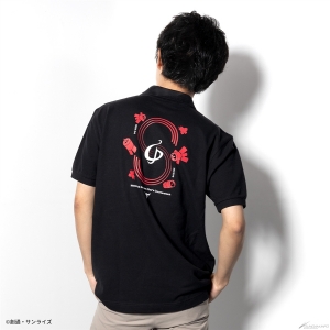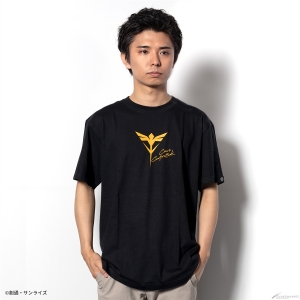 Le modèle de costume pilote char a le logo U.C. 0093 et une conception de char dans une combinaison pilote face à Amuro, qui a quitté sa MS, imprimé sur le dos du tissu noir.