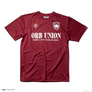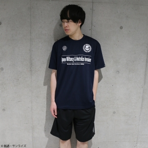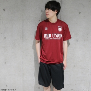 Présentation de trois types de T-shirts secs et shorts secs chacun avec des conceptions sportives faites à l’image de Z.A.F.T., OMNI Enforcer, et l’Union d’orbe deMOBILE SUIT GUNDAM SEED.