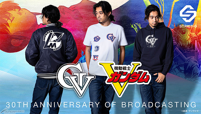 Cinq éléments deMOBILE SUIT V GUNDAMBroadcast 30th Anniversary New Apparel Collection sortira de STRICT-G, la boutique de vêtements qui présente l’univers Gundam, le 14 octobre.