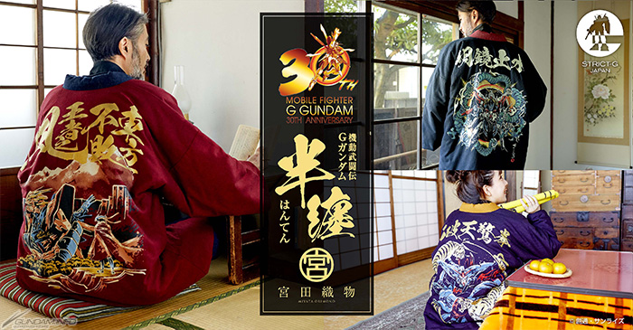Des vestes hanten rembourrées ont été lancées en collaboration avec Miyata Orimono, un fabricant de tissus en coton fondé il y a plus de 100 ans dans la ville de Chikugo, dans la préfecture de Fukuoka, pour célébrer le 30e anniversaire de laMobile Fighter G Gundam.