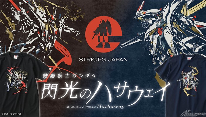 Trois types d’éléments STRICT-G Japon basés sur des dessins de Brush art-like deCostume mobile Gundam Hathawaysera en vente à partir de ce week-end, le dimanche 4 juillet, dans tous les magasins STRICT-G, qui offrent des vêtements qui comprend des éléments de l’univers GUNDAM.