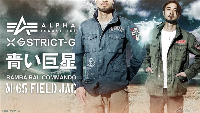 Two types of M-65 field jackets created through a collaboration between military fashion brand ALPHA INDUSTRIES and Mobile Suit Gundam will be released at STRICT-G apparel shops, which incorporate the world of Gundam.