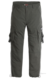 This Anorak jacket had a boxy and slightly cropped silhouette. It has silver piping, an oversized utility chest pocket, a strap that can be tied at the back, and a large Strike Gundam graphic on the back. It can also be combined with the cargo pants, and the pants and back pockets have Strike Gundam patches and piping.