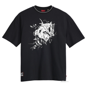 These boxy T-shirts are available in two colors: Star Bright White and Destruction Black. Both types have a Strike Gundam graphic jacquard weave collaboration patch.