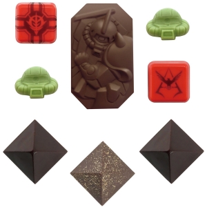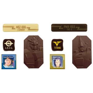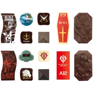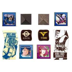 Tous ont des designs avec les combinaisons mobiles et des personnages deMOBILE SUIT GUNDAMEtMOBILE SUIT Z GUNDAMsur l’emballage et les chocolats.La gamme a une grande variété, y compris des ensembles de chocolat, du chocolat en canettes et du chocolat dans des caisses.