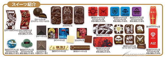 Huit types de Mobile Suit Gundam les chocolats de cardiaque CORPORATION seront disponibles du lundi 21 décembre à des coins du marché dans les supermarchands et autres boutiques sélectionnées sur le Japon.