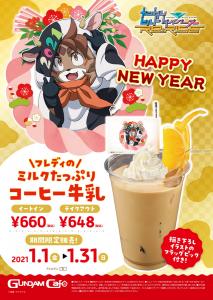 Le lait de café à base de Freddie est une boisson à temps limitée inspirée par les FreddieGundam Build Divers Re:RISE.Il comprendra une année de création spéciale de la figure « Ox ».