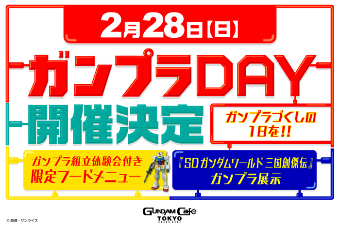 Une journée remplie de GUNPLA ! Le jour de GUNPLA aura lieu au GUNDAM café TOKYO le 28 février !