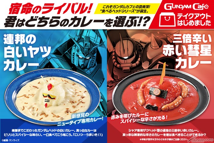 Maintenant, vous pouvez profiter de GUNDAM café original currys et le GUNDAM café burger comme un plats à emporter ou livrés à vous.