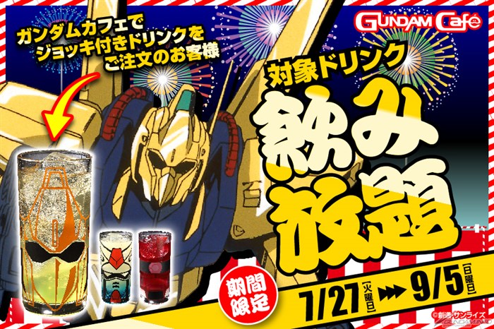 Veuillez noter qu’actuellement, le GUNDAM café TOKYO sert uniquement des boissons non alcoolisées et que le GUNDAM SQUARE sert de l’alcool jusqu’à 19h00 (les conditions s’appliquent).