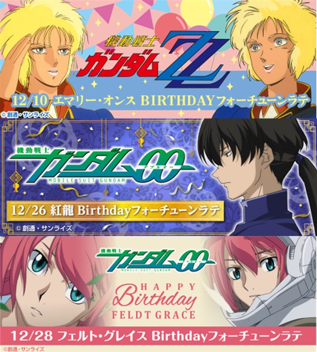 Décembre birthday fortuneLattes pour once Emary et Feldt Grace sont disponibles au GUNDAM café !