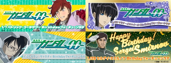 Quatre caractères deMOBILE SUIT GUNDAM 00auront fortuneLattes disponibles : Patrick Colasour, Marina Ismail, Ian Vashti, et Sergei sourire.