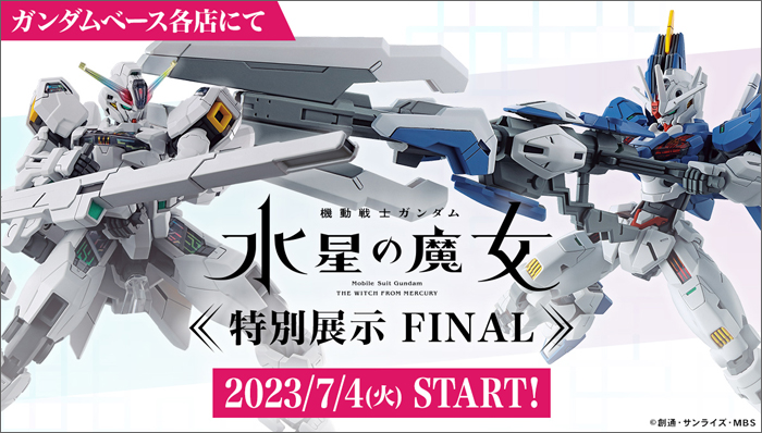 LlaMobile suit Gundam la sorcière de mercureL’exposition FINAL débute demain, le mardi 4 juillet, à toutes les succursales de la BASE GUNDAM, l’installation générale de GUNPLA.