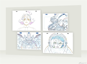 Cette zone présente des matériaux de production inestimables tels que des copies d’images clés et des documents de référence deLA SORCIÈRE DE MERCUREAnime.