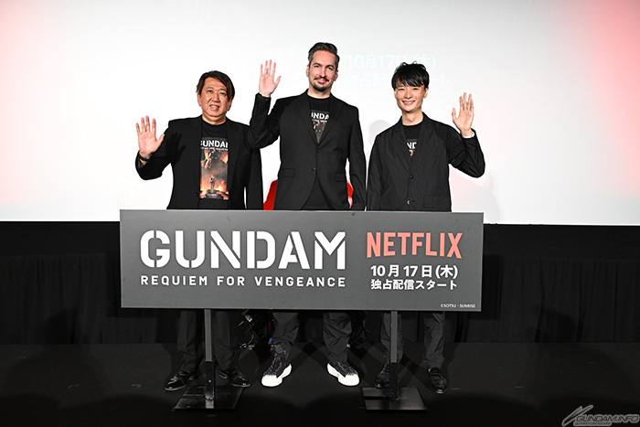 Gundam : Requiem pour la vengeancecommence enfin à être diffusé dans le monde entier sur Netflix le jeudi 17 octobre. Une projection spéciale en avant-première pour célébrer la sortie de la série a eu lieu aujourd'hui, samedi 12 octobre, au TOHO Cinemas Roppongi Hills à Tokyo.