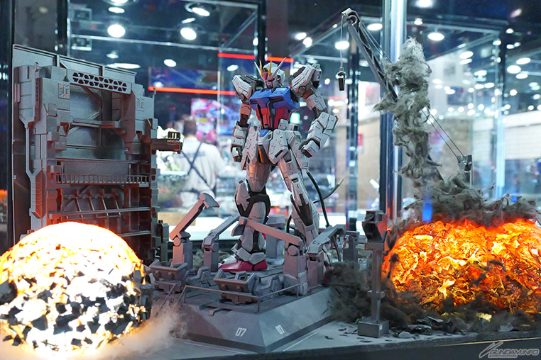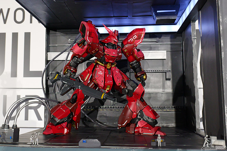 Commentaire : La réalisation de cette pièce a dû être difficile puisqu’elle est basée sur une scène emblématique qui représente les Sazabi. Cependant, le GUNPLA principal de ce chef-d’œuvre a été soigneusement conçu, et le hangar environnant et les effets de lumière sont stupéfiants. Le hangar est éclairé par le haut avec des lumières LED, et sa conception permet à la lumière d’entrer de l’extérieur pour créer un affichage global efficace.