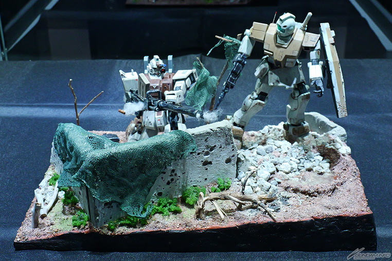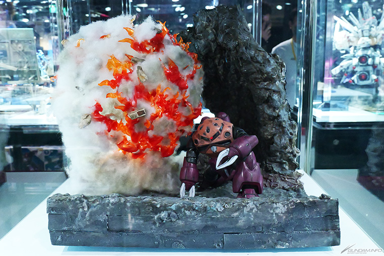 Commentaire : La qualité de construction du diorama est excellente, et même les détails tels que l’eau et l’huile sont reproduits en haute résolution. Il coupe intentionnellement le moment où le GM explose plutôt que la célèbre scène où il est transpercé, faisant ressentir aux spectateurs les mêmes émotions que le soldat de la Fédération de la Terre émerveillé murmurant le titre de ce chef-d’œuvre.