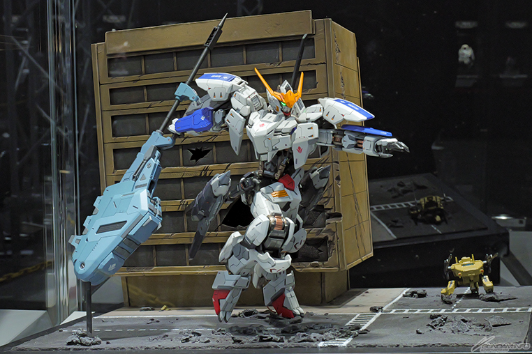 Commentaire : La base du diorama a été inclinée pour souligner la pose dynamique du Barbatos. C'est fascinant de voir qu'un Builder du cours U-20 maîtrise cette technique pour créer un chef-d'œuvre avec un grand dynamisme.