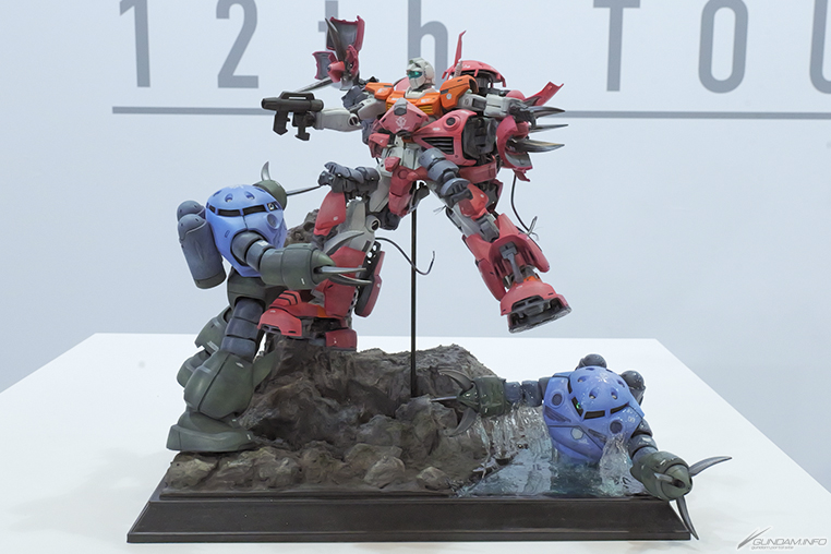 Commentaire : Ce n'est pas une coïncidence si la finale du tournoi a eu lieu le même jour que la sortie de la HG Z'Gok (SEED FREEDOM Ver.), et qu'un Builder a pu rapidement transformer le MS populaire en ce chef-d'œuvre. Il est méticuleusement conçu et peint, même jusqu'à l'intérieur de l'armure du Z'Gok qui s'envole, ce qui en fait une pièce vraiment impressionnante.