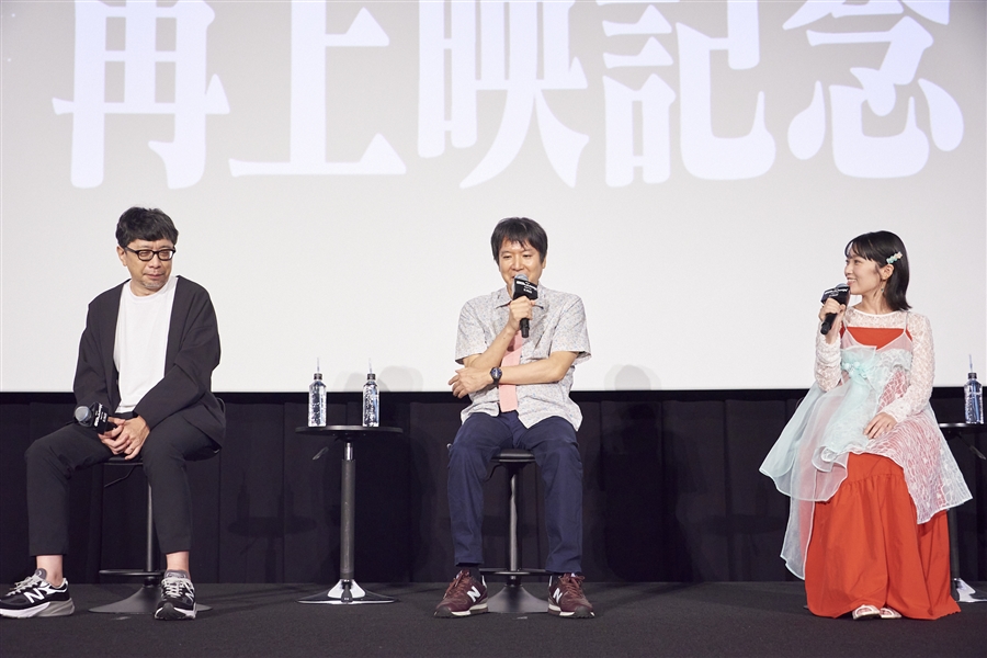 Tsurumaki : « Tout d’abord, je suis reconnaissant pour la rediffusion deDébut, puisque ses recettes au box-office ont dépassé les 3,5 milliards de yens (applaudissements nourris du public). C'est grâce à vous tous. Merci beaucoup. La série télévisée est structurée de manière à ce que la chronologie saute d’avant en arrière, mais leDébutLe film que vous avez vu aujourd’hui est chronologiquement cohérent, ce qui le rend facile à comprendre et à regarder, donc je serais ravi si vous veniez le voir à nouveau. Merci beaucoup.