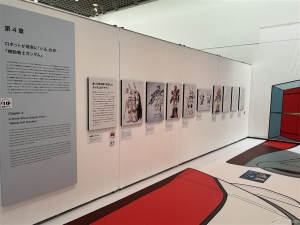 De la série Gundam, une impression du RX-78 Gundam de 18 m de long (la hauteur du Gundam selon les spécifications de l’anime) a été appliquée sur le sol. Il y a aussi une exposition présentant le processus de production de l’animation traditionnelle pour le premier épisode deMobile Suit Gundam, une explication des coulisses du processus de conception du Gundam, et des jouets rétro tels que l'Ensemble de Combinaison Gundam DX.
