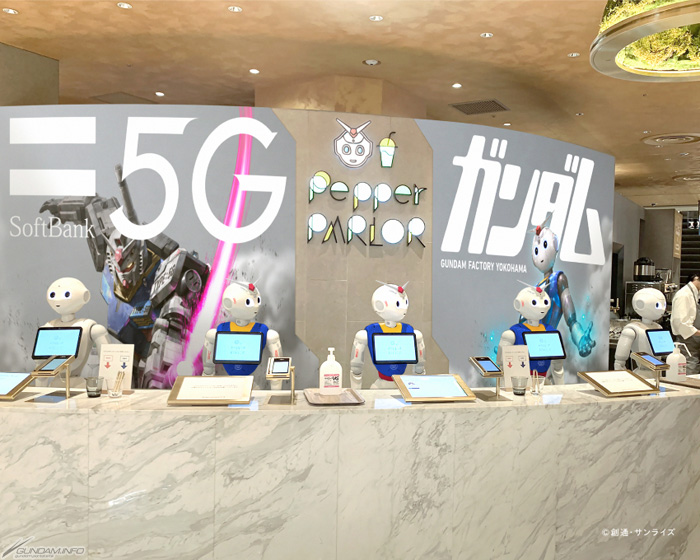 GUNDAM FACTORY YOKOHAMA Pepper & SoftBank 5G Working Gundam collab Cafe détails