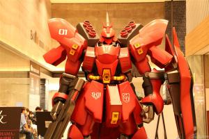 Des statues de deux mètres de haut du Sazabi et de banshee peuvent être vues à la Ekimae Hiroba sur l’étage B4 de la marque est Minatomirai bâtiment juste à côté de la gare.