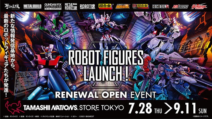 Les réservations ouvertes aujourd’hui pour l’entrée à robots figurines lancent !, un événement débutant le jeudi 28 juillet, détenu par le TAMASHII NATIONS STORE TOKYO (TNST), un magasin phare directement géré par les Nations Tamashii.