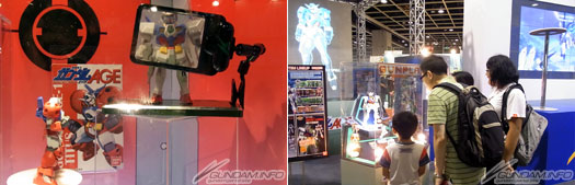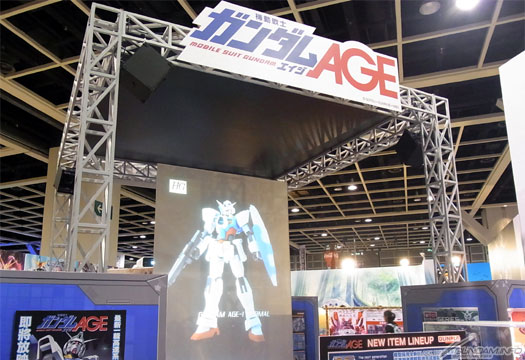 Bandai's booth exhibited items like Gunpla and figures, with a special focus on the upcoming Mobile Suit Gundam AGE. The booth was popular in Hong Kong, with many visitors.