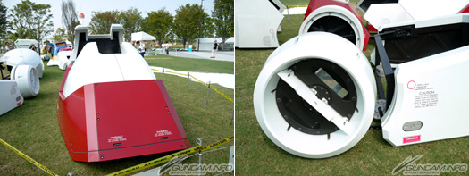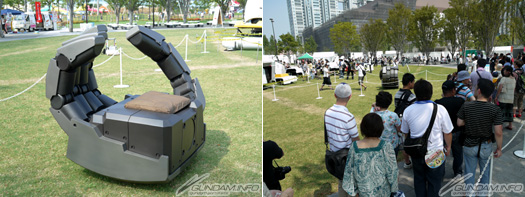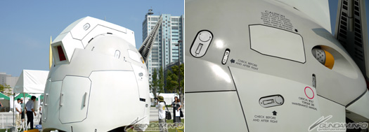 This time, you can see parts up close for the first time. Attendees can climb into the Gundam's right manipulator, or ride a bicycle to light up the Gundam's eyes.