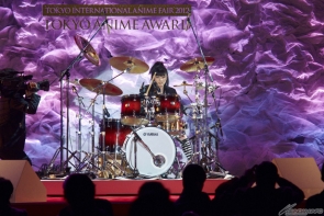 さらに会場には、スペシャルゲストとして15歳の少女ドラマー、川口千里さんが登場し『機動戦士ガンダムSEED』のエンディングテーマ「あんなに一緒だったのに」などを演奏。続いて登場した歌手の高橋洋樹氏は、『ドラゴンボール』の主題歌「摩訶不思議アドベンチャー!」などを熱唱し、列席者を沸かせる一幕も。