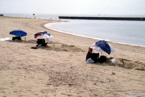 Even though it's a bit too chilly to go for a dip, there's still plenty of people fishing and playing on the beach.