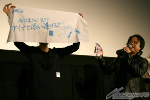 最後は、来場者への特別プレゼント抽選会が実施され、二人の直筆サインが入った色紙が3名に、檜山氏直筆のサブタイトルが入れられた当時の貴重なセル画が5名にプレゼントされた。
