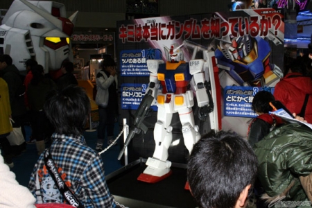 A 1/12 Gundam greets visitors to the Bandai booth.