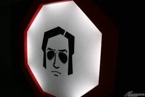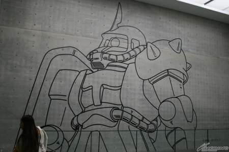 ▲会場へと向かう階段では、巨大な「シャア専用ザク」が壁面に描かれている。