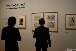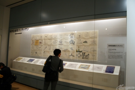 ▲会場入ってすぐの場所には、「科学忍者隊ガッチャマン」など、大河原氏が手掛ける初期の作品の資料が並ぶ。